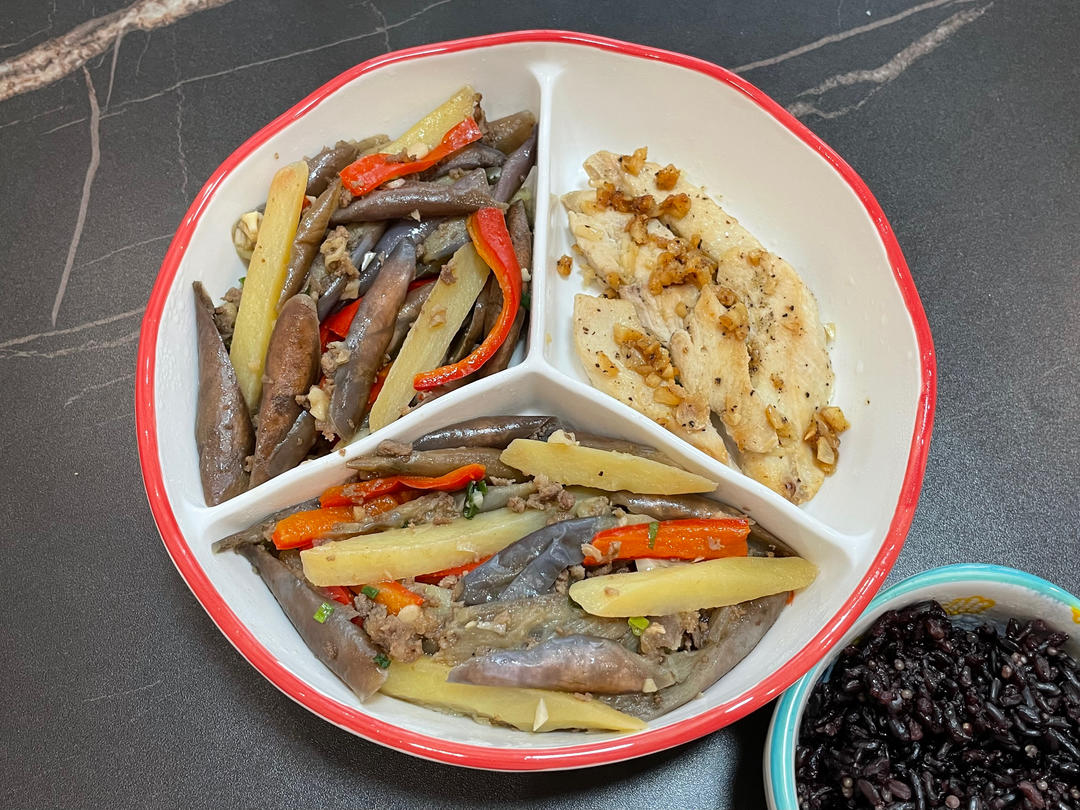 土豆烧茄子+香煎鸡胸肉