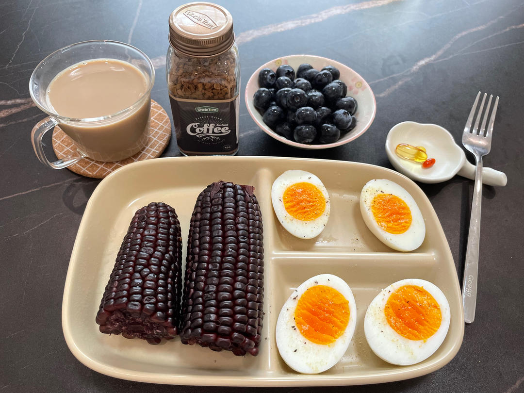 黑糯玉米+蓝莓,花青素满满。新买的咖啡真不戳,小小一罐也很适合想不断尝新的我。