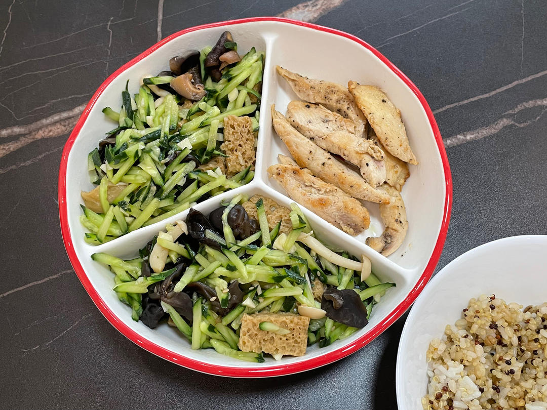 香煎鸡胸肉+凉拌烤麸+藜麦饭