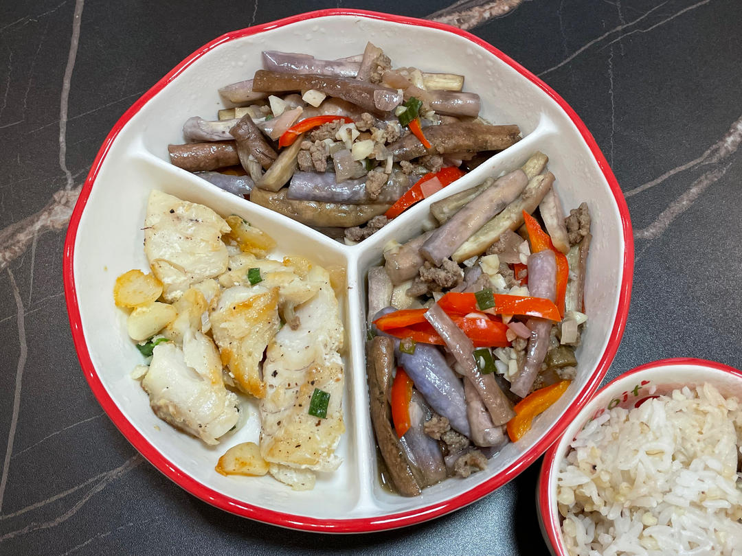 肉末茄子+香煎鳕鱼~