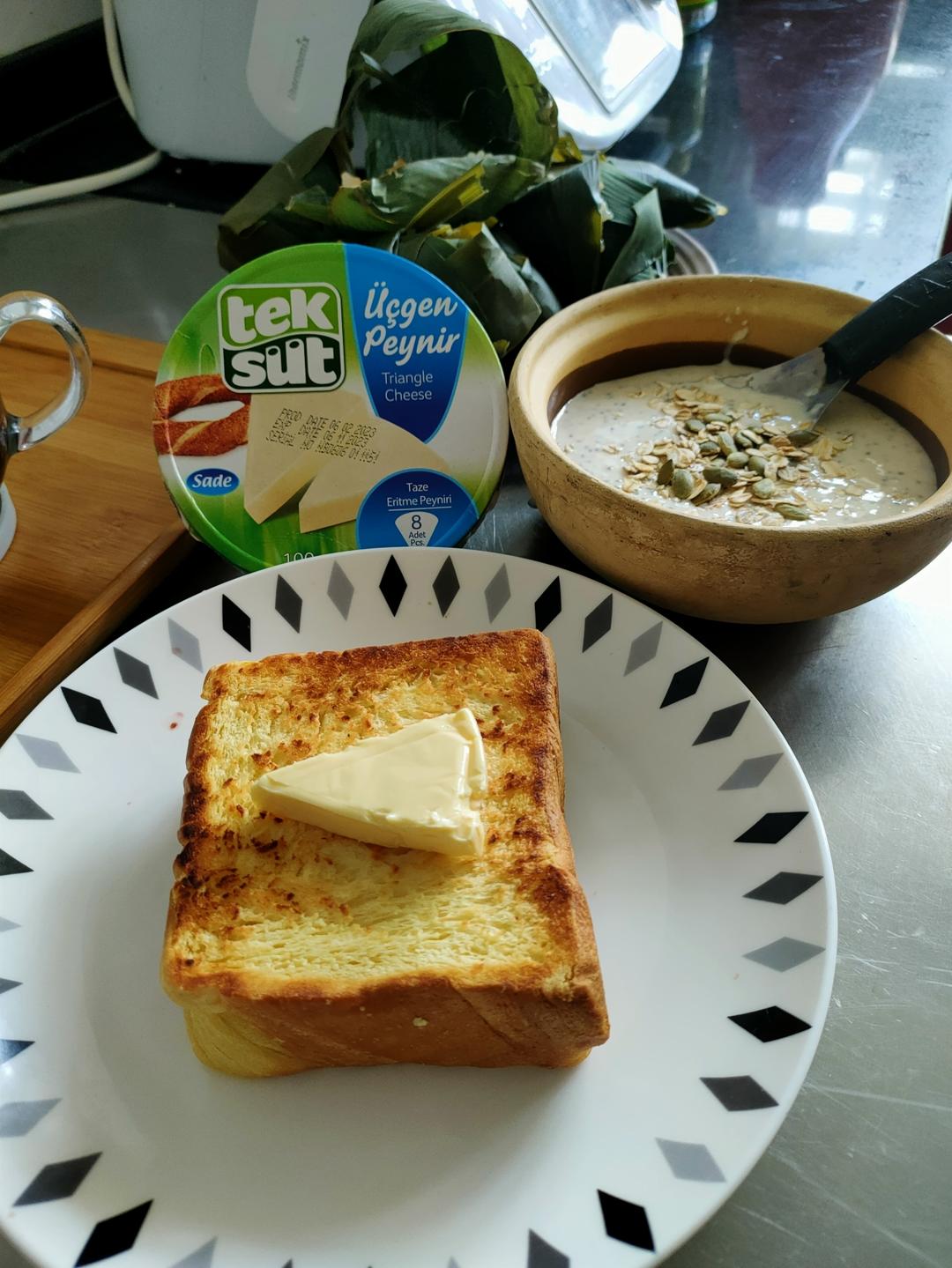 下午茶,黄油厚切吐司,燕麦酸奶