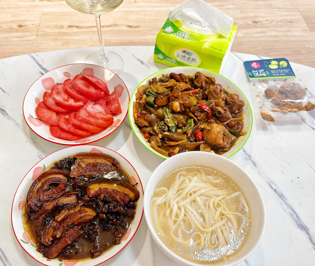 枣庄辣子鸡,梅菜烧肉,糖拌🍅