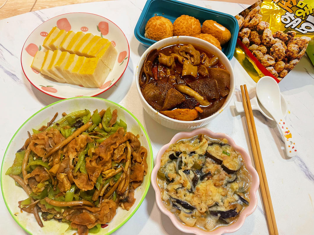 午:🍲快手家常菜(炸素春卷+西红柿炒蛋+豆角焖...