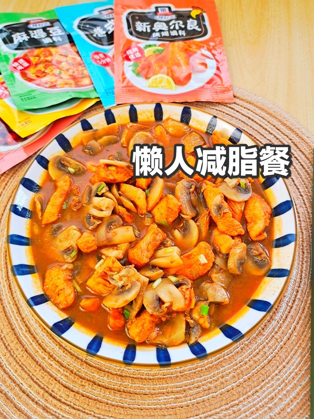 一拌一炒一份精致懒人减脂餐就完成了!比懒我是认真的!谁敢说你不会烧饭!|口菇炒鸡丁!