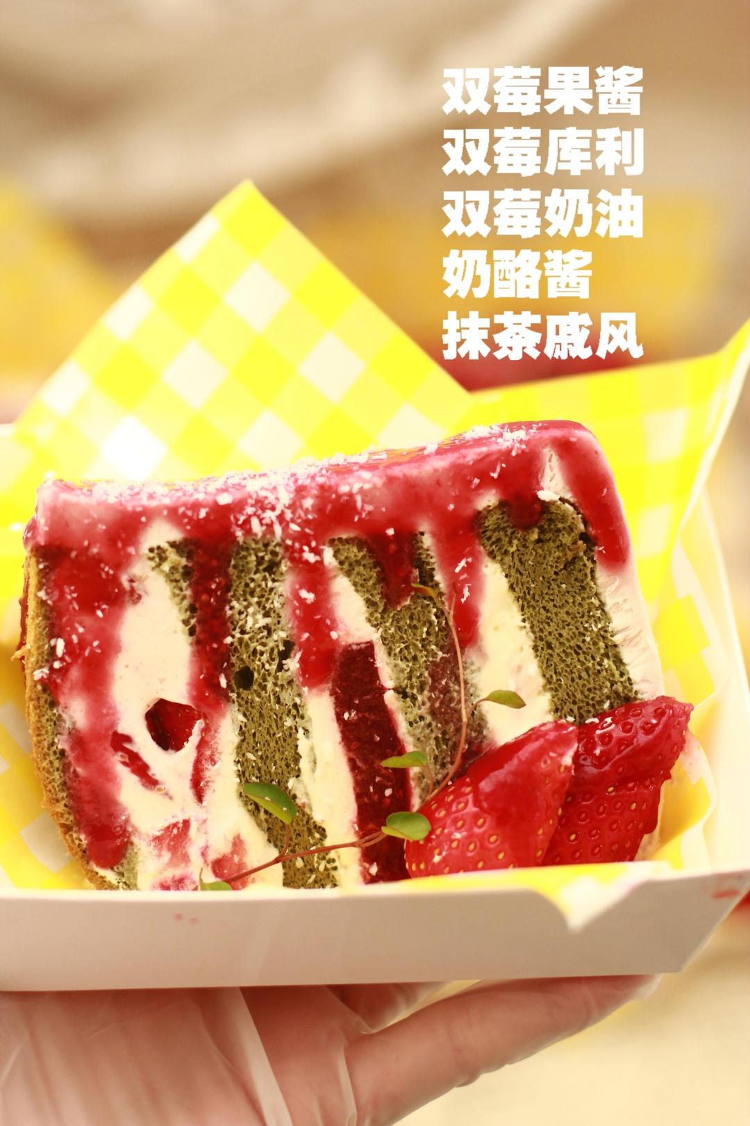 这样一款抹茶双莓酪酪雪山切块蛋糕,就比较适合喜欢吃新鲜水果的低糖的人群,果醬是自己用新鲜丹东大草莓熬的,比成品果蓉成本低...