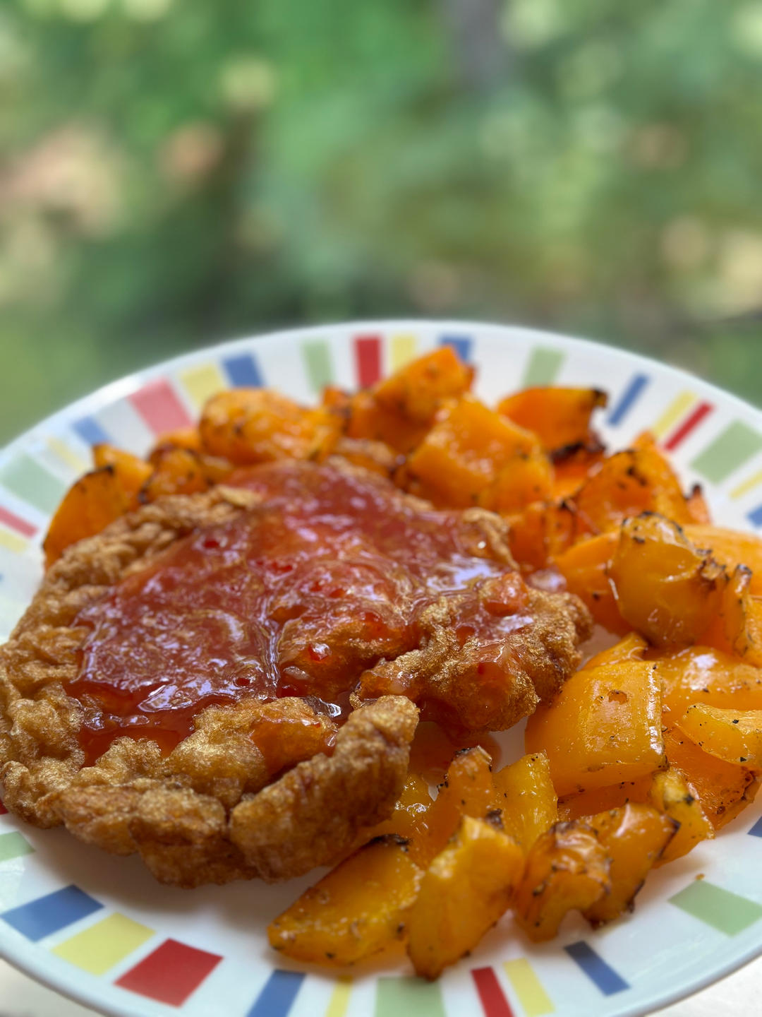 酸甜醬配空氣炸鍋炸蛋白&烤橙椒,這個組合奇怪的菜,出門估計真吃不到了;超好吃!哇哈哈哈!#午餐•2023年5月2...