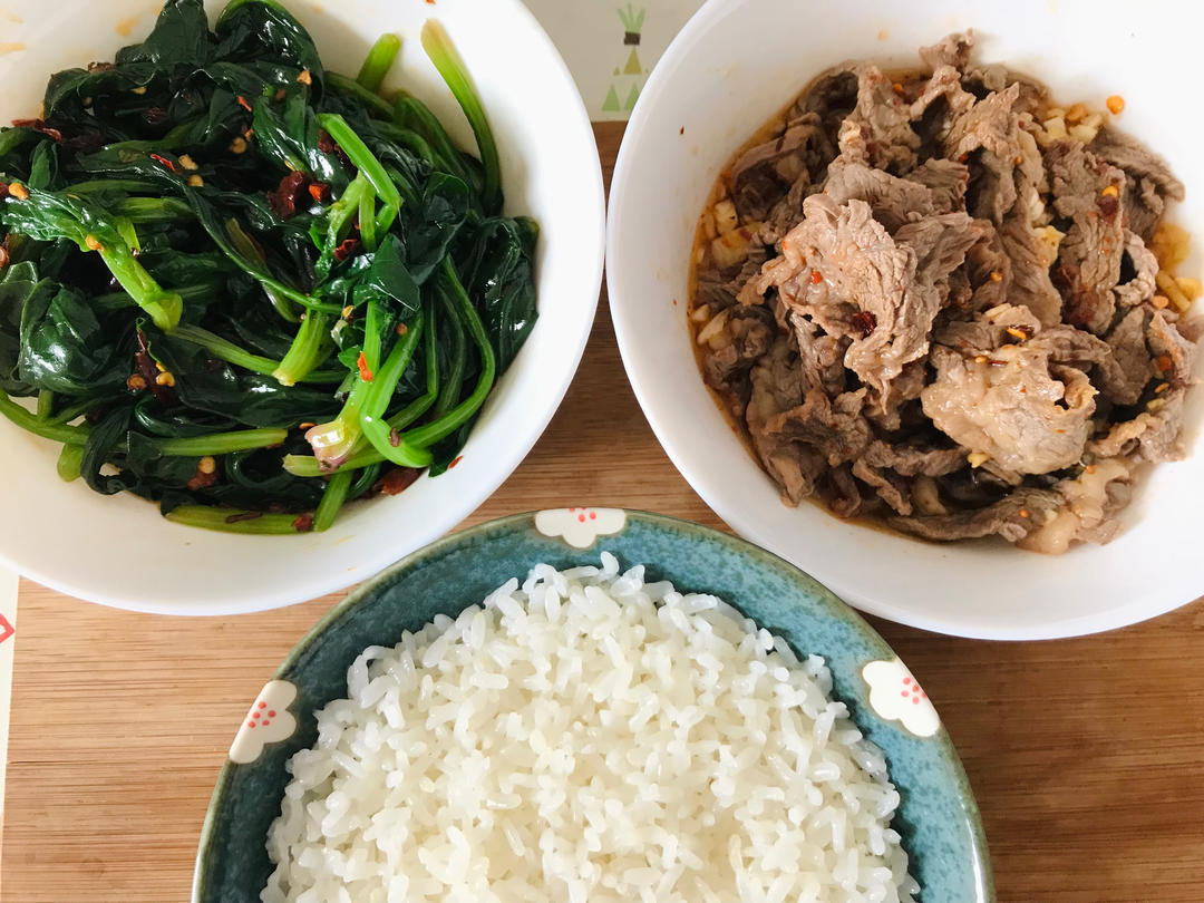 榨菜肉丝 /洋葱牛肉/ 蒜泥菠菜