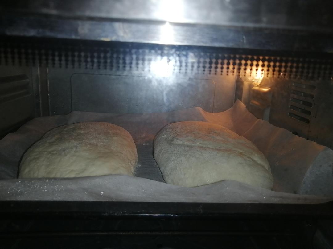 500克高筋粉 400克水,4克酵母,20克油,7克盐,250度预热20分钟,240度20分钟...