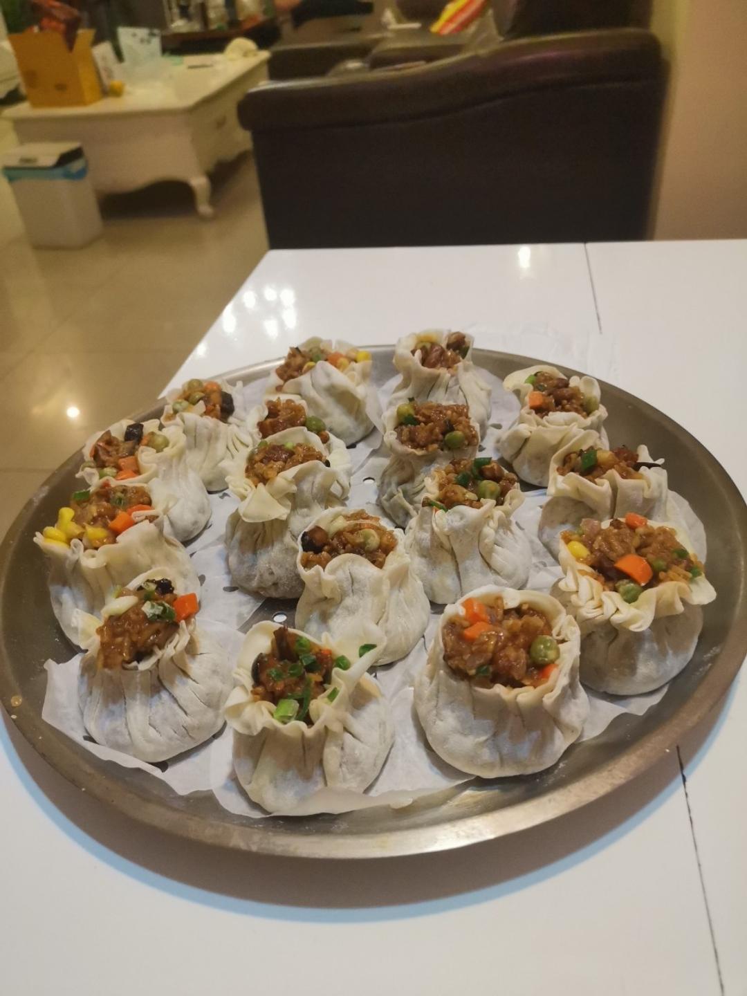准备 作次日早餐,自幹烧麦皮做法差不多,只是放入熟糯米后加点水闷熟一下,起锅加了点碗豆玉米...