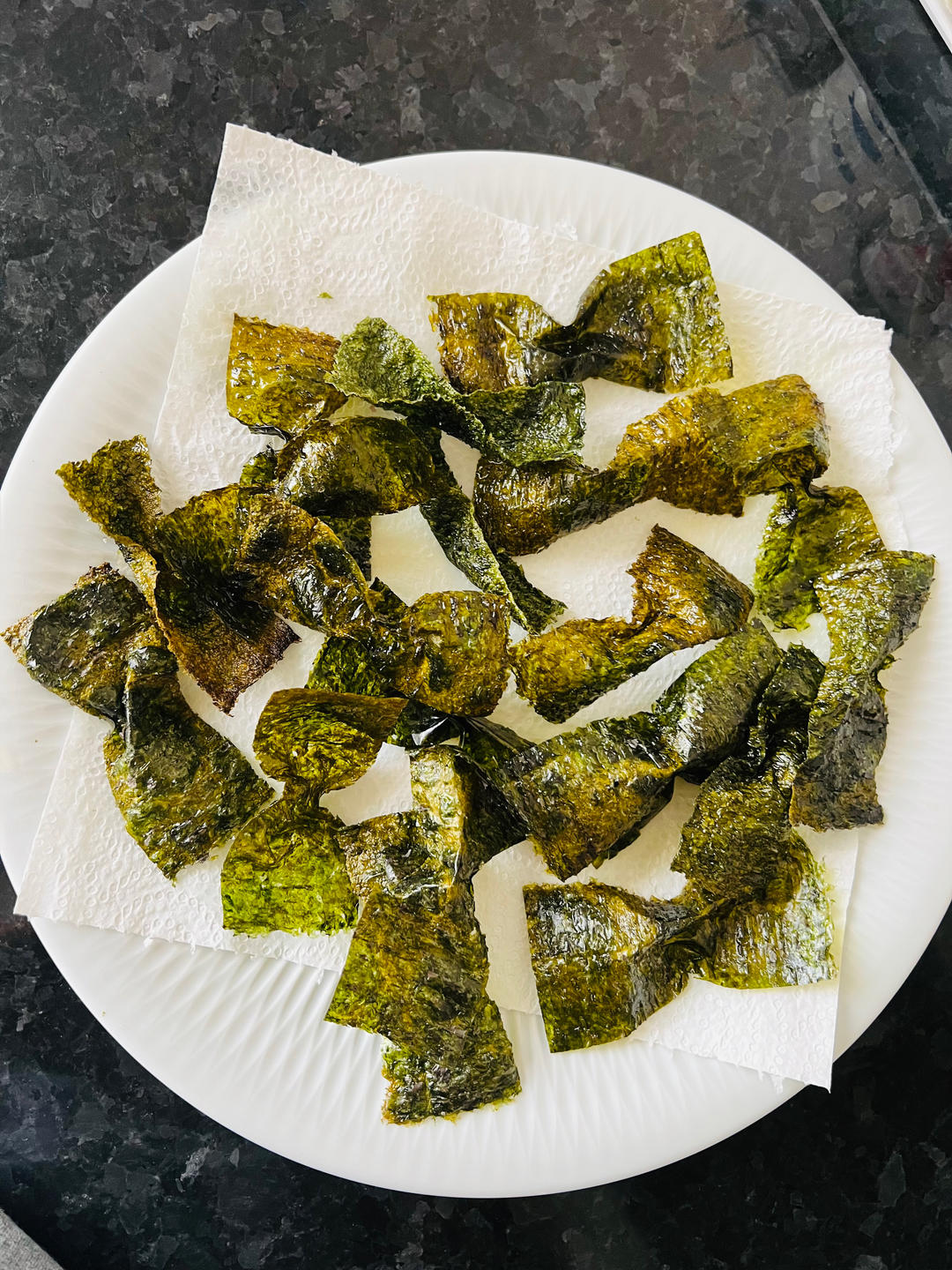买来做寿司的海苔,姐姐不喜欢这种,她喜欢脆脆的,所以就稍微炸了一下,夹出来的时候自动成蝴...