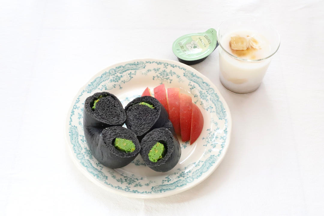 D1484 早餐:开心果乳酪贝果+苹果+咖啡牛奶