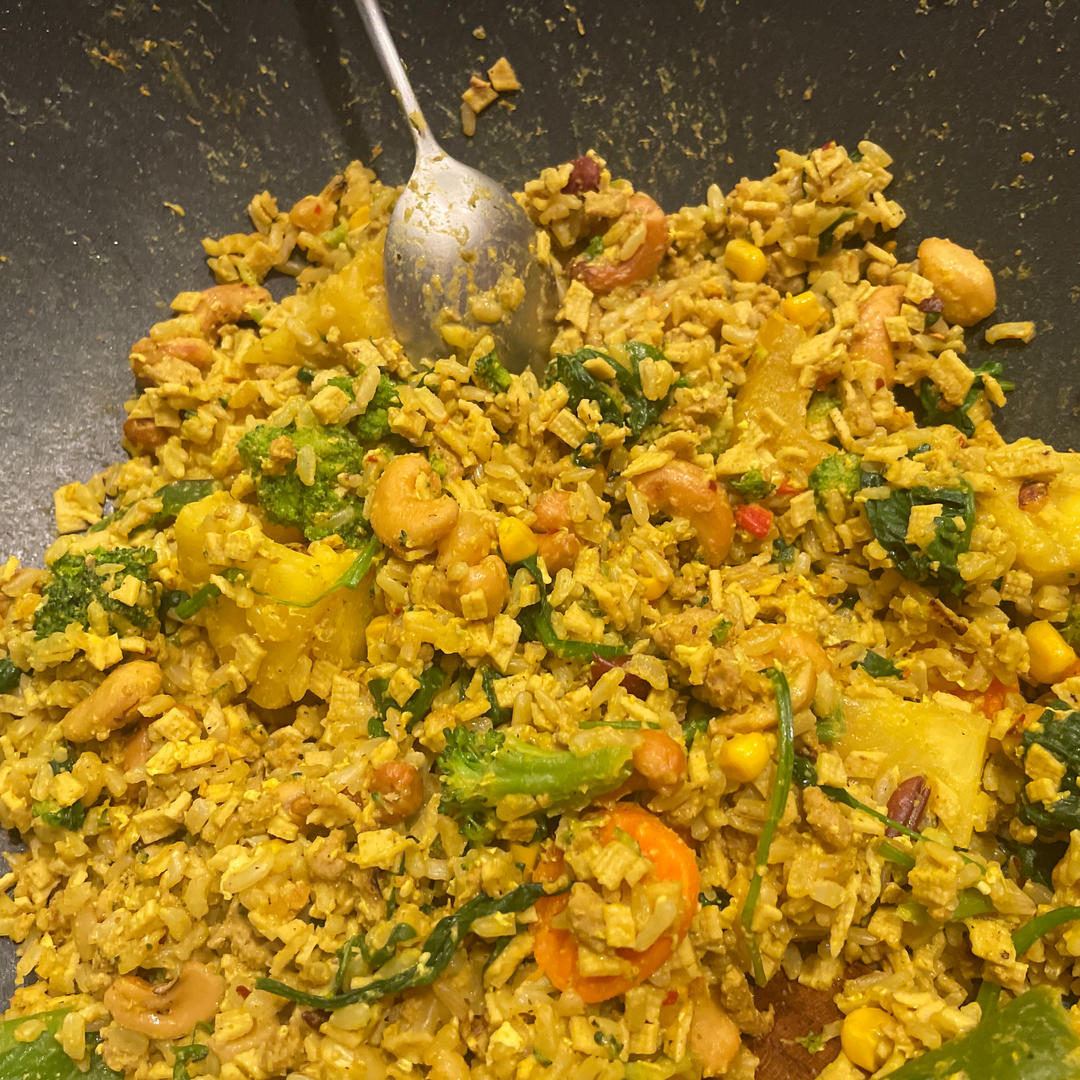 深夜看完电影给DQ炒饭 米饭做多了 所以额外划出来一份加点盐和调料给我吃