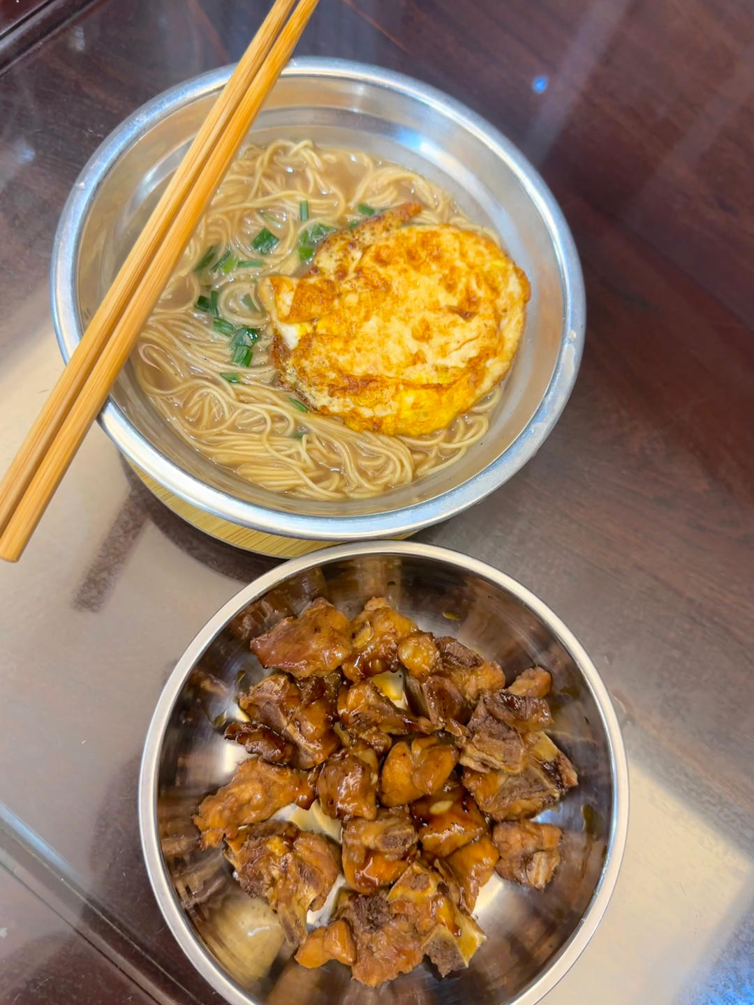 鸡蛋汤面和排骨
