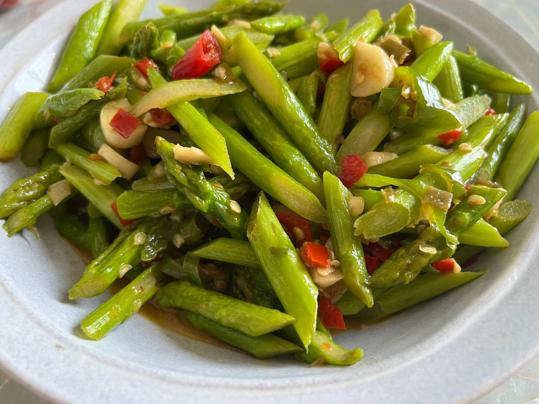 清炒芦笋、蚝油生菜