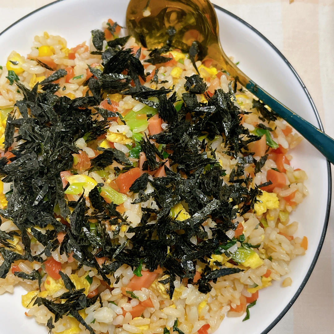 海苔蛋炒饭~附上趁着夕阳余晖出门买的海洋之歌和满天星,20块钱一大束满天星,连塑料瓶都变得好看了