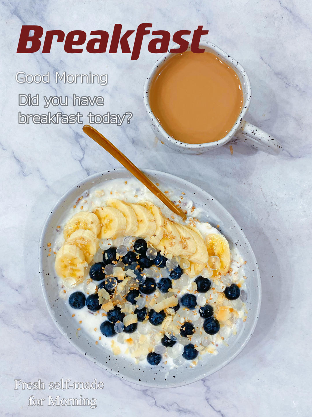 早:☕奶咖+🥣隔夜酸奶燕麦粥