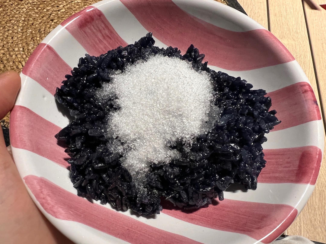 娃说明早吃醪糟蛋花小汤圆,突然想整点色彩。家里只有紫...