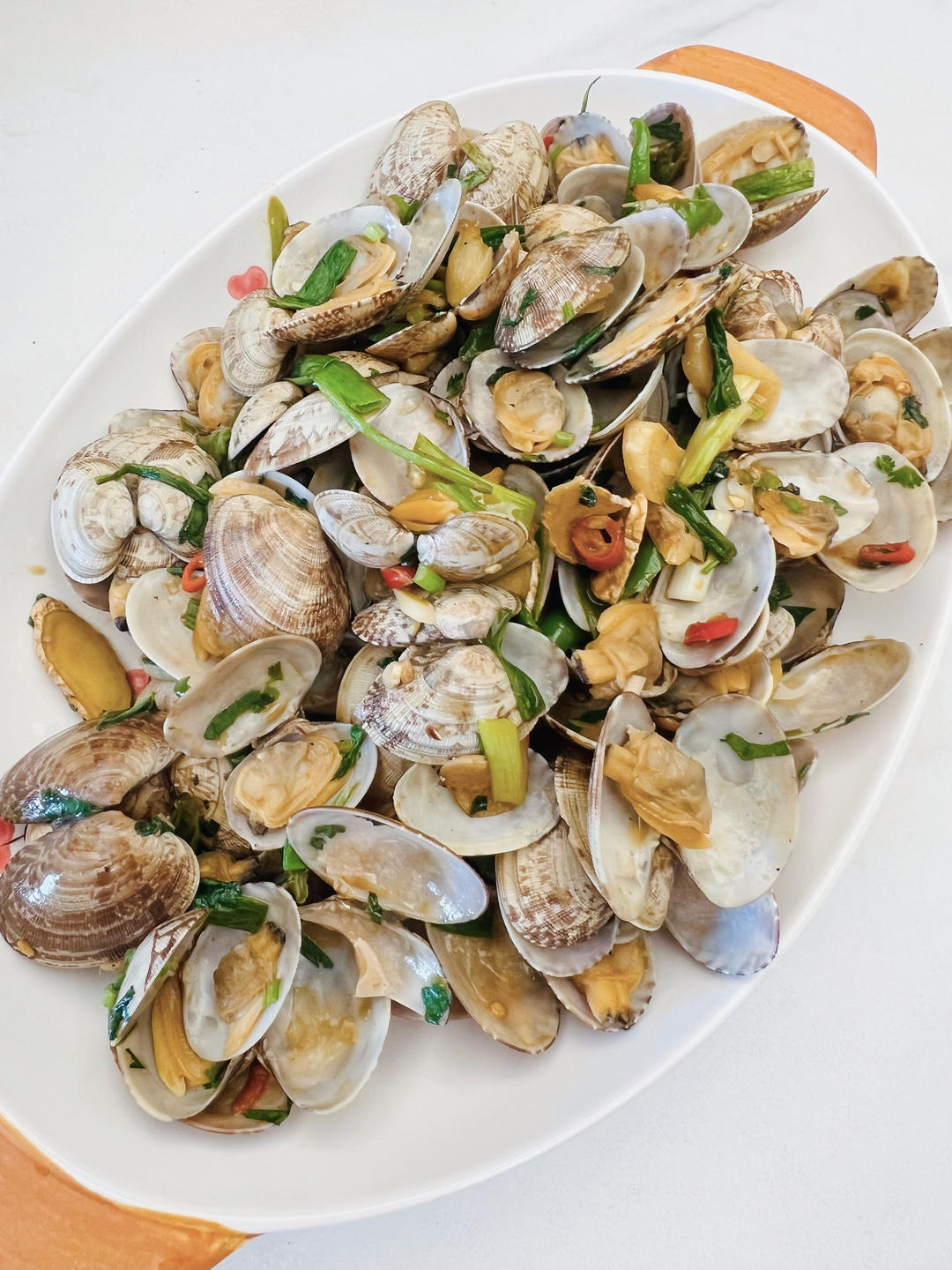 第一次学着炒花蛤,还算成功。