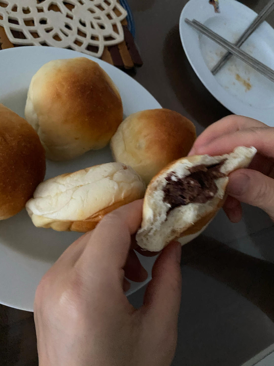 用了老师的方子,做了红豆馅减了20克糖,4克多盐,新良黑金粉,300克有机3.6奶和20克的水,有点粘手,分两炉烤180...