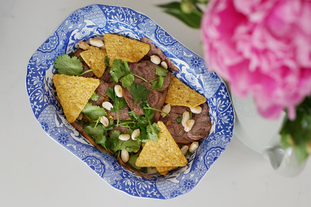 昨天卤了牛腱子,某仁说好香,一听说是中餐还是牛腱子就直皱眉头,今天切了一块让他尝尝,突然就一副见了世面的样子,就着玉米薯...