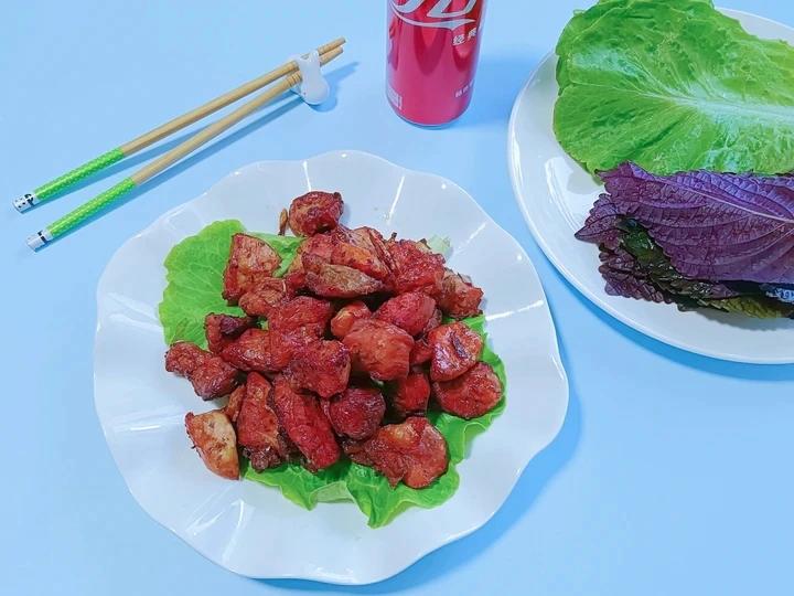 烤肉卷生菜叶、卷紫苏叶配上可口可乐