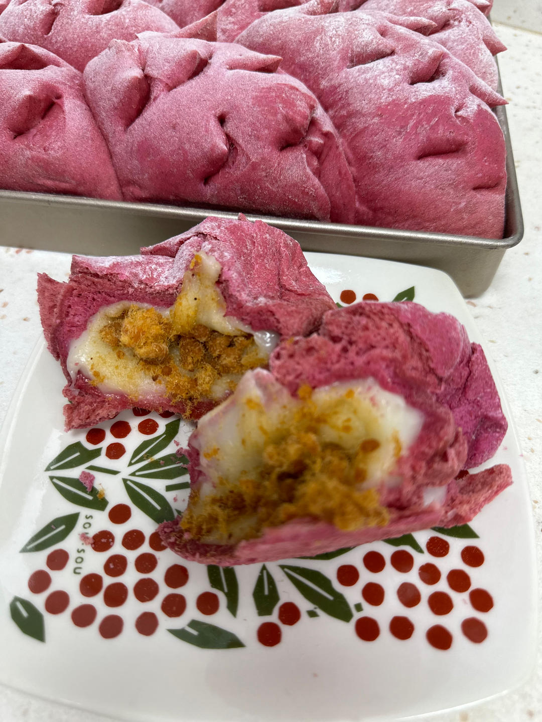 很棒很棒 之前做贝果剩下了点陷料 肉桂坚果陷儿 被我包进去了