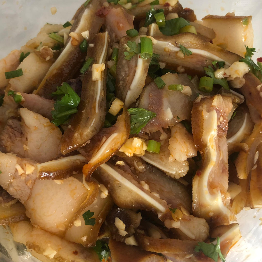回到家就喝酒吃肉,叉烧肉+米酒