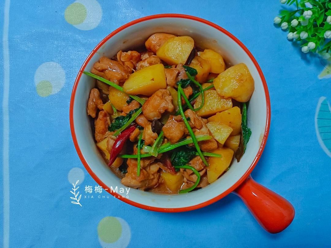 土豆焖鸡腿肉丁,焖煮熟的土豆🥔很粉~鸡腿肉也不柴,微辣,在夏天也很下饭!