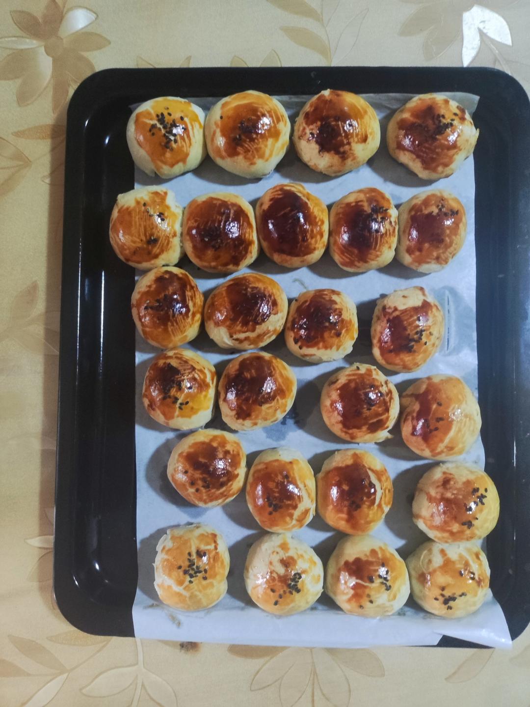 第一次做,喜欢奶味多一点,加了黄油,鸡蛋,水用椰子水替代了,其它一样,180℃预热好,上下火18分钟,感觉上色不那么好,...
