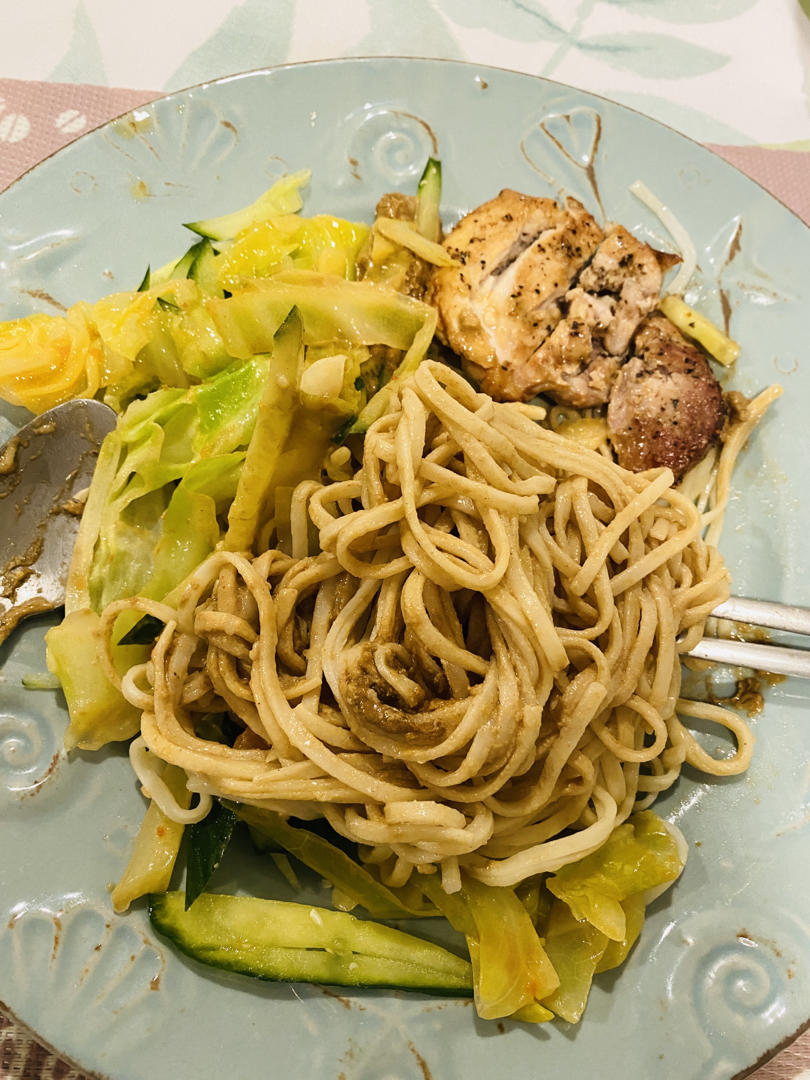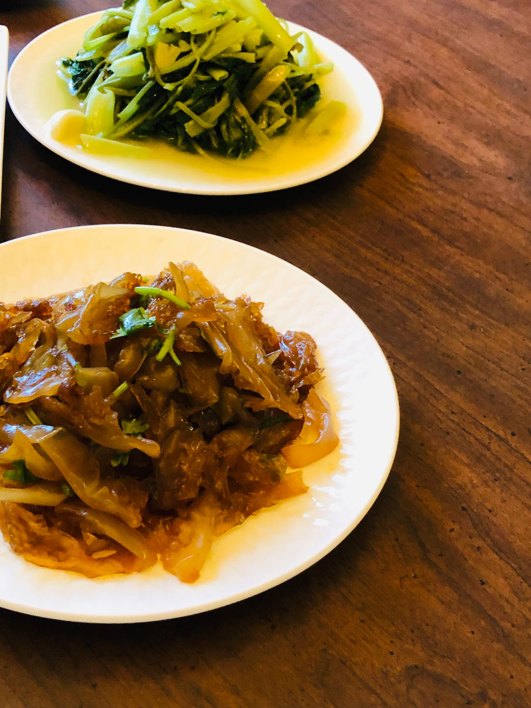 素Basil炒河粉,合掌瓜炒云耳,芥菜黄豆
