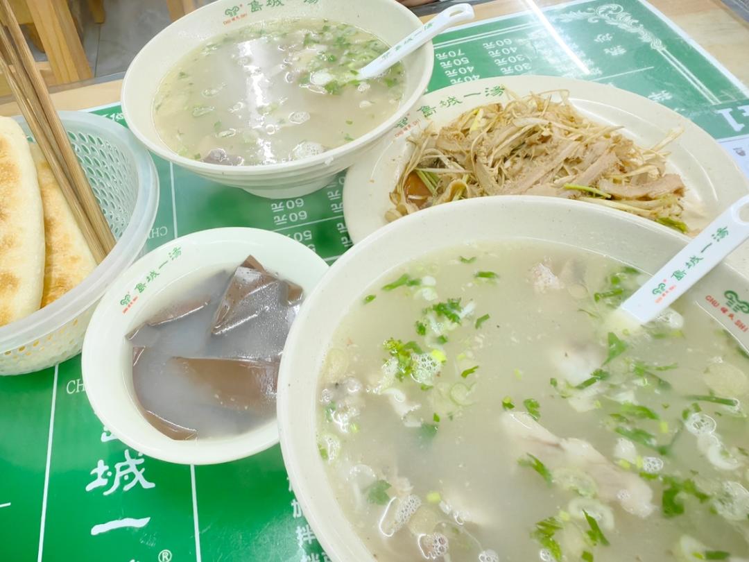 今天累了外面吃了,100元的老字号岛城一汤:老汤羊肉汤加血、拌羊肚、新出炉的热油酥火烧他吃了仨😻