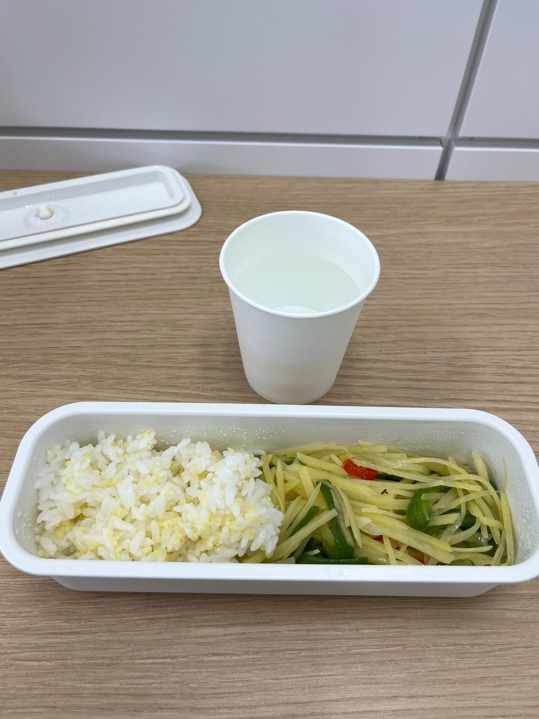 炝土豆丝、甘蓝豆腐丝、素拍黄瓜、炒三丝、美极萝卜,主食:米饭