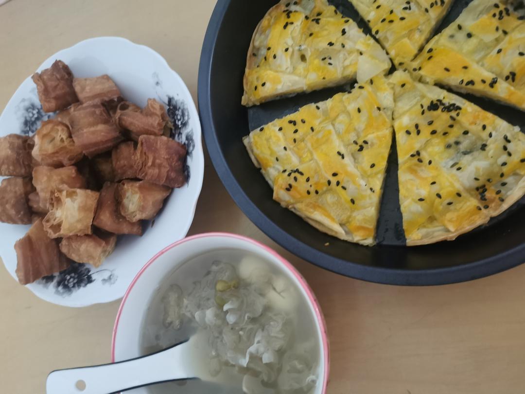 香蕉手抓饼+复炸油条+绿豆银耳汤