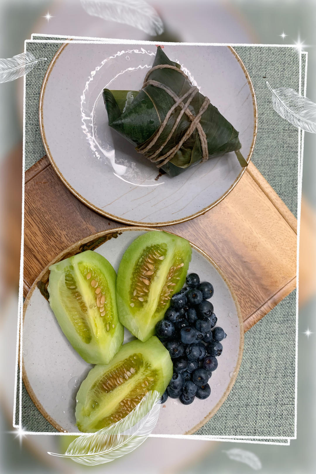 两个小朋友包的肉粽子,剩最后一个啦。送给我时她们告诉我让我且吃且珍惜。...