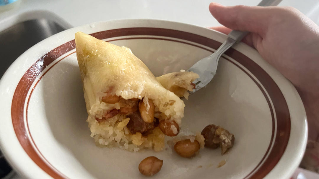 早上健身以后快乐碳水又吃了粽子哈哈,昨天香港同学带给我一个她妈妈包的咸粽子~里边料很丰富,我问她她妈妈是在dc租了车去大...