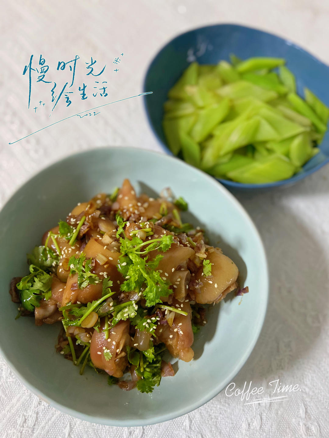 凉拌猪蹄,清炒莴笋