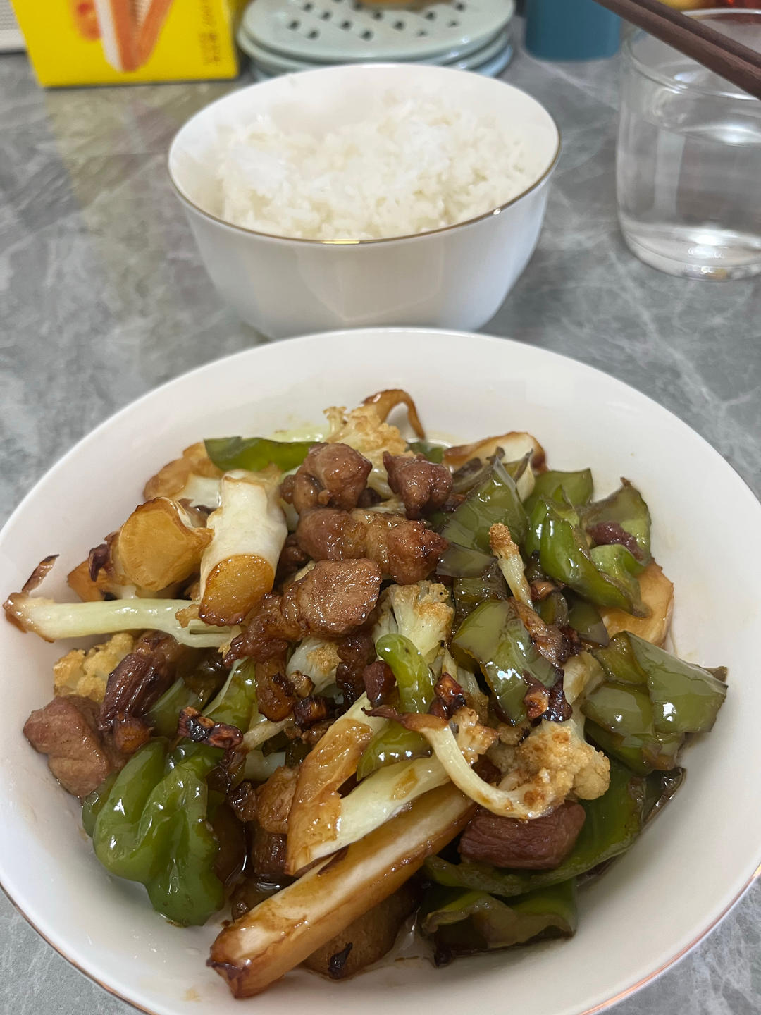 第一次学做炒肉,太成功了!!就是油倒的有点多,还有洗螺丝椒的时候直接上手剥结果两只手被辣了好久😭加了菜花很美味