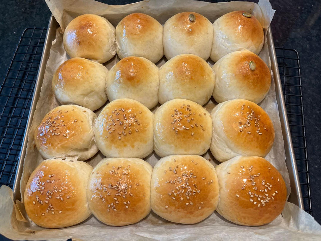 不错,烤180度21分钟。5个豆沙馅、3个枣蓉馅、8个餐包。还是有馅的好吃。