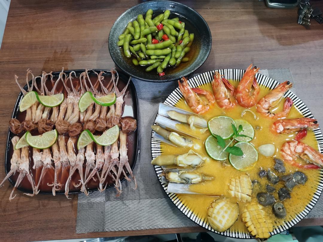 海鲜冬阴功汤+糟卤毛豆+糟卤柠香鸭舌