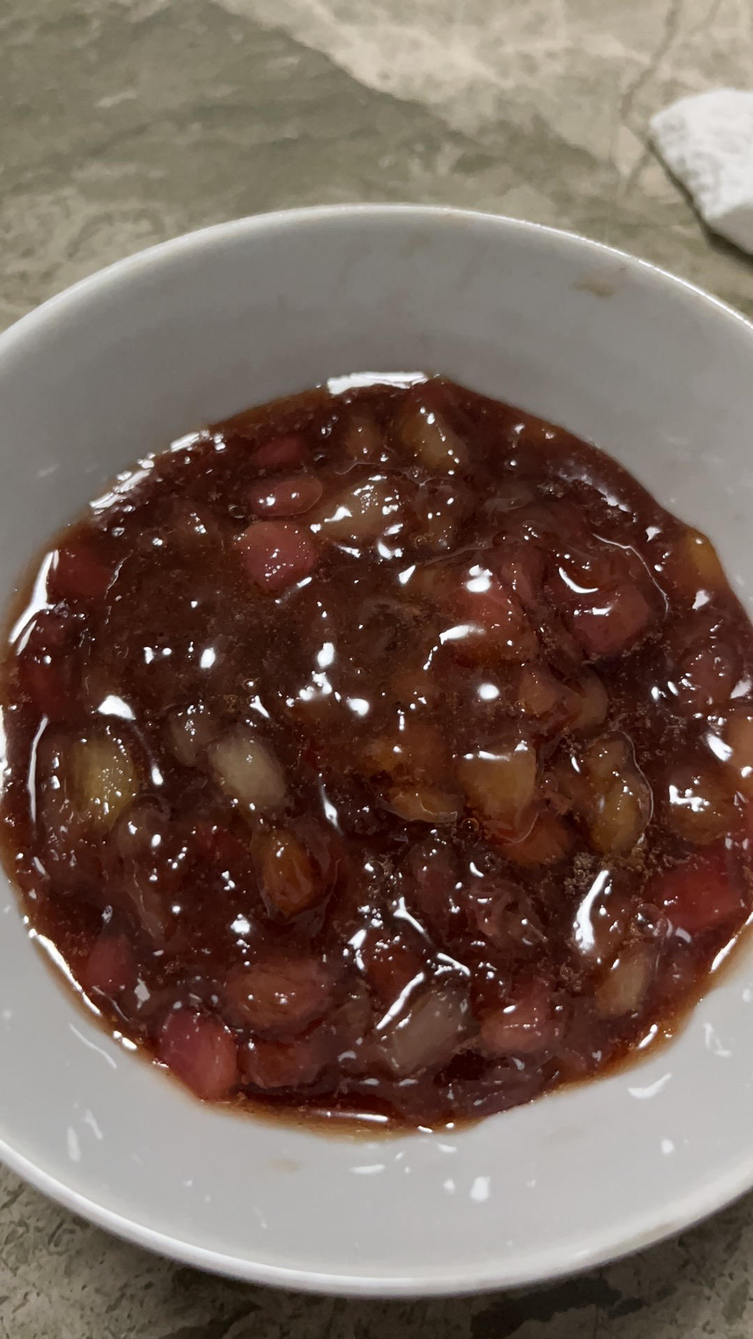 300g果肉,150g白糖,成品250g。没有柠檬就没放,反正两天就吃完了。