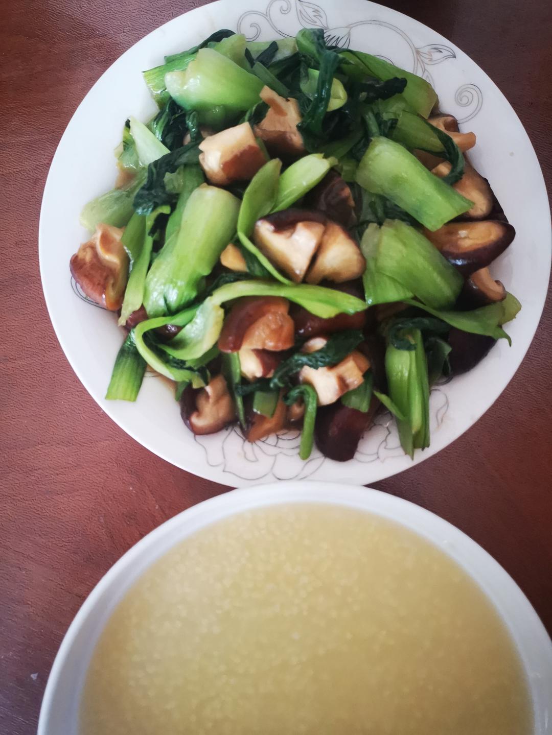 2023.7.24周一早午餐 香菇油菜、小米粥、包子
