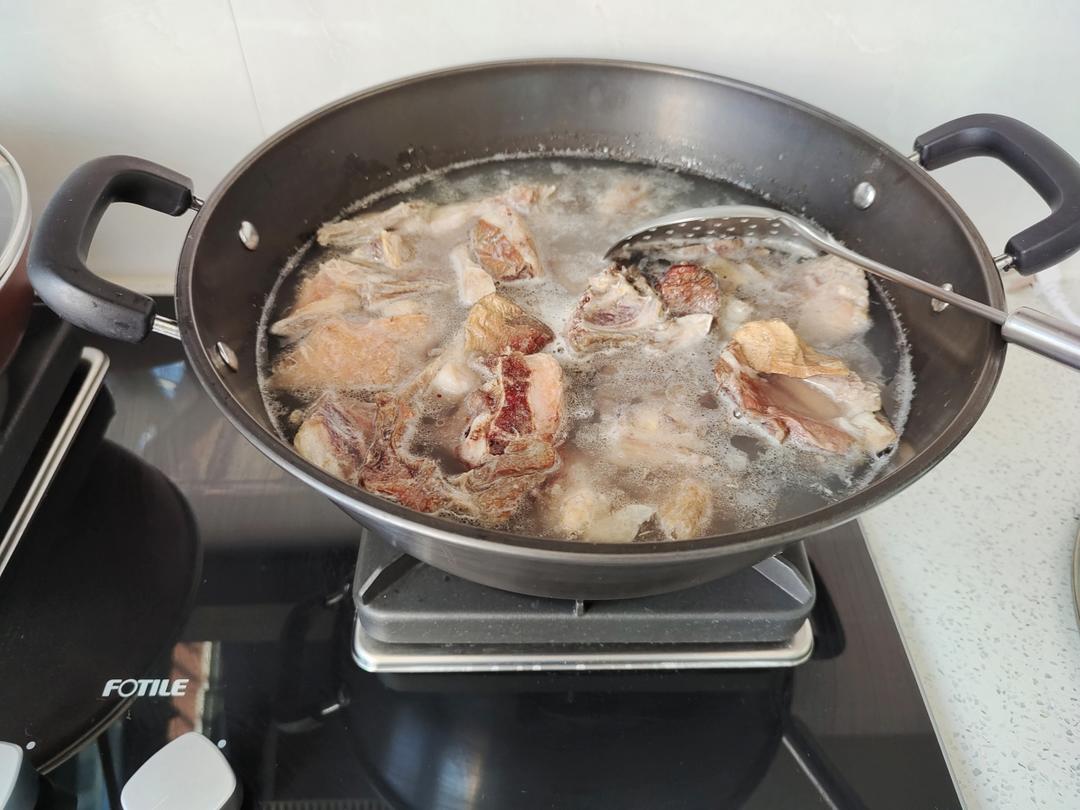阿尔巴斯风干羊肉的做法,冷水下锅焯水,起沫捞出,换水继续,辅料葱,姜,辣椒,花椒,干姜面,盐,大火熬沸腾,文火慢炖二个半...