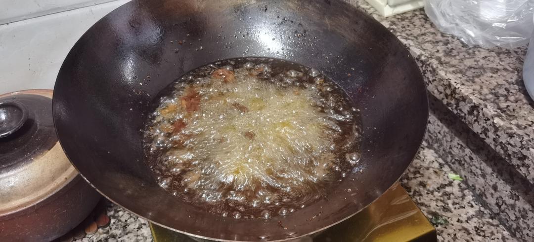 第一次炸鸡骨架,酱油下多了,盐也好像放多了,调料有点多,腌的时间有点长,成本出来后好咸,而且黑乎乎的#宵夜•2023年7...