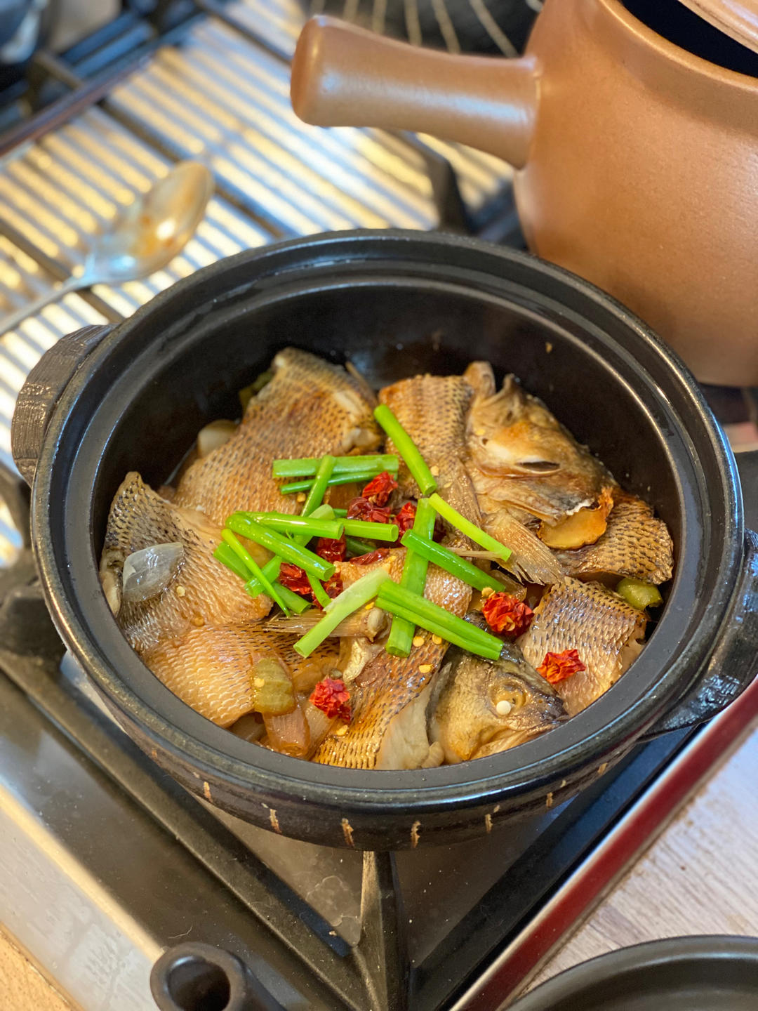 一早送来的鱼我腌制了一上午很入味 按照方子来 简直太好吃了就是广式生啫煲的感觉~底料我多加了很多蒜还有尖椒 辅料入味还有...
