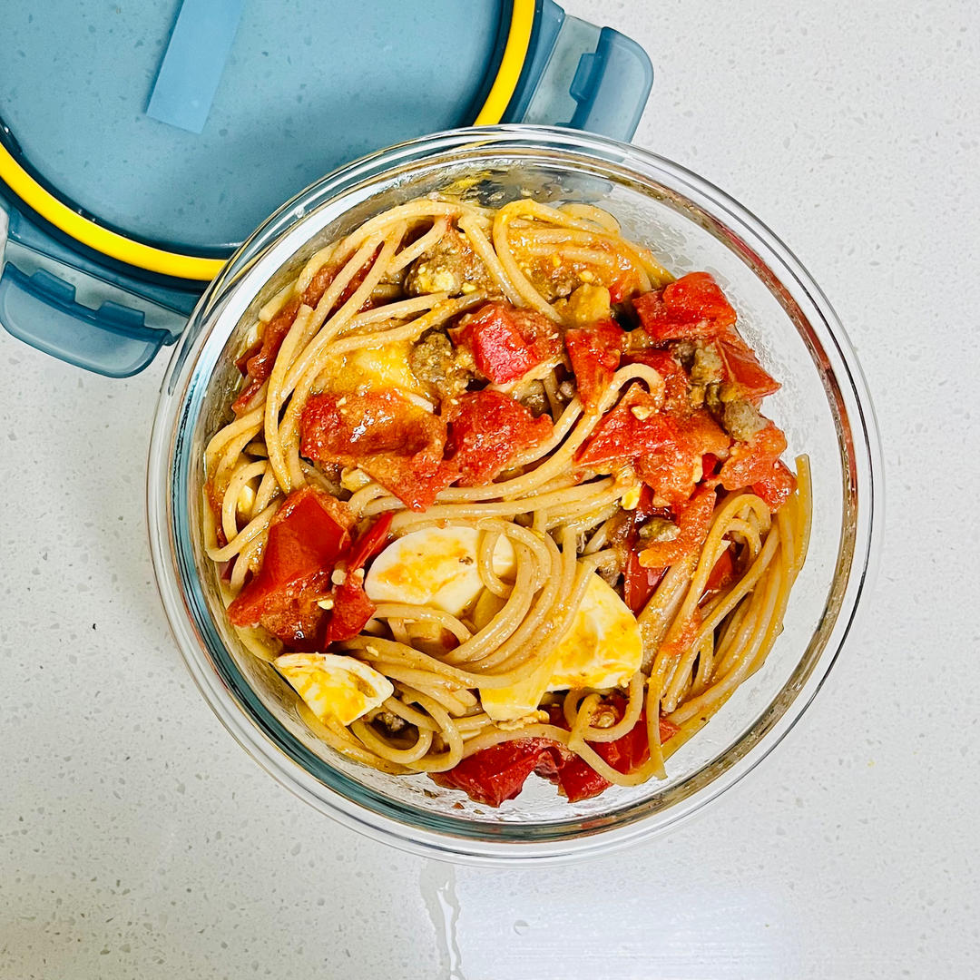 牛肉番茄水煮蛋,全麦意大利面。