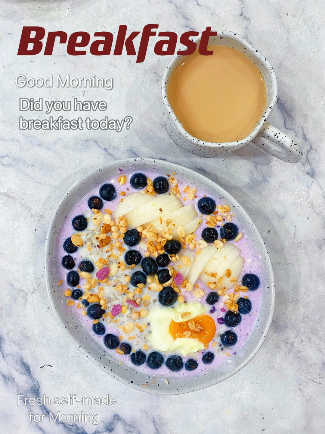 早:☕奶咖+🥣鲜果酸奶燕麦粥