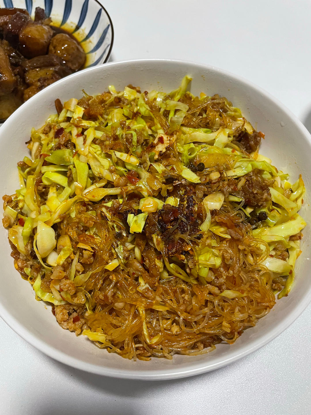 肉沫粉丝+包菜,好吃,非常下饭!