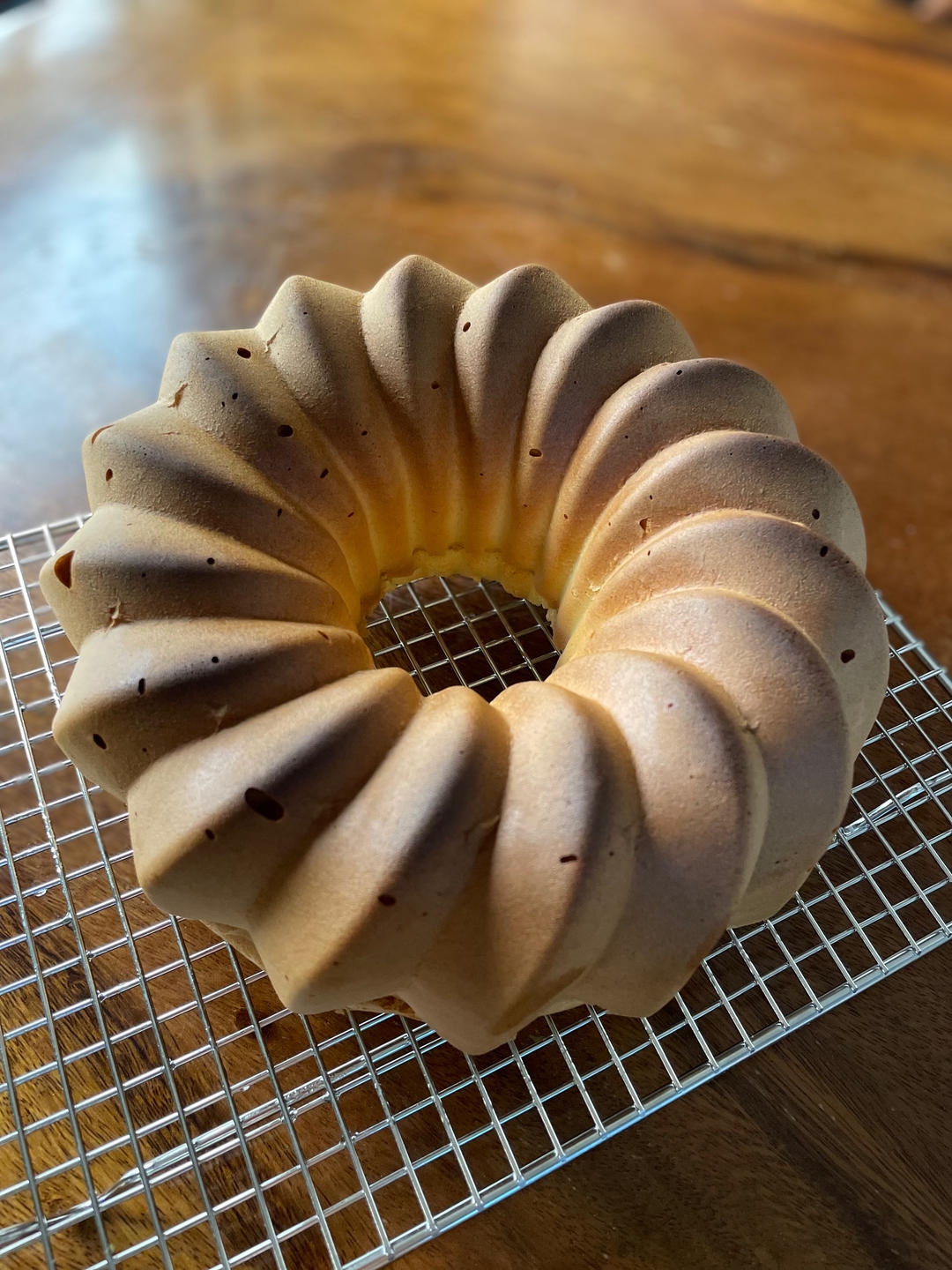 蛋黄没放糖、柠檬皮和柠檬汁,加了8克香草精,所以是香草戚风😀180度40分钟,表皮厚,下...