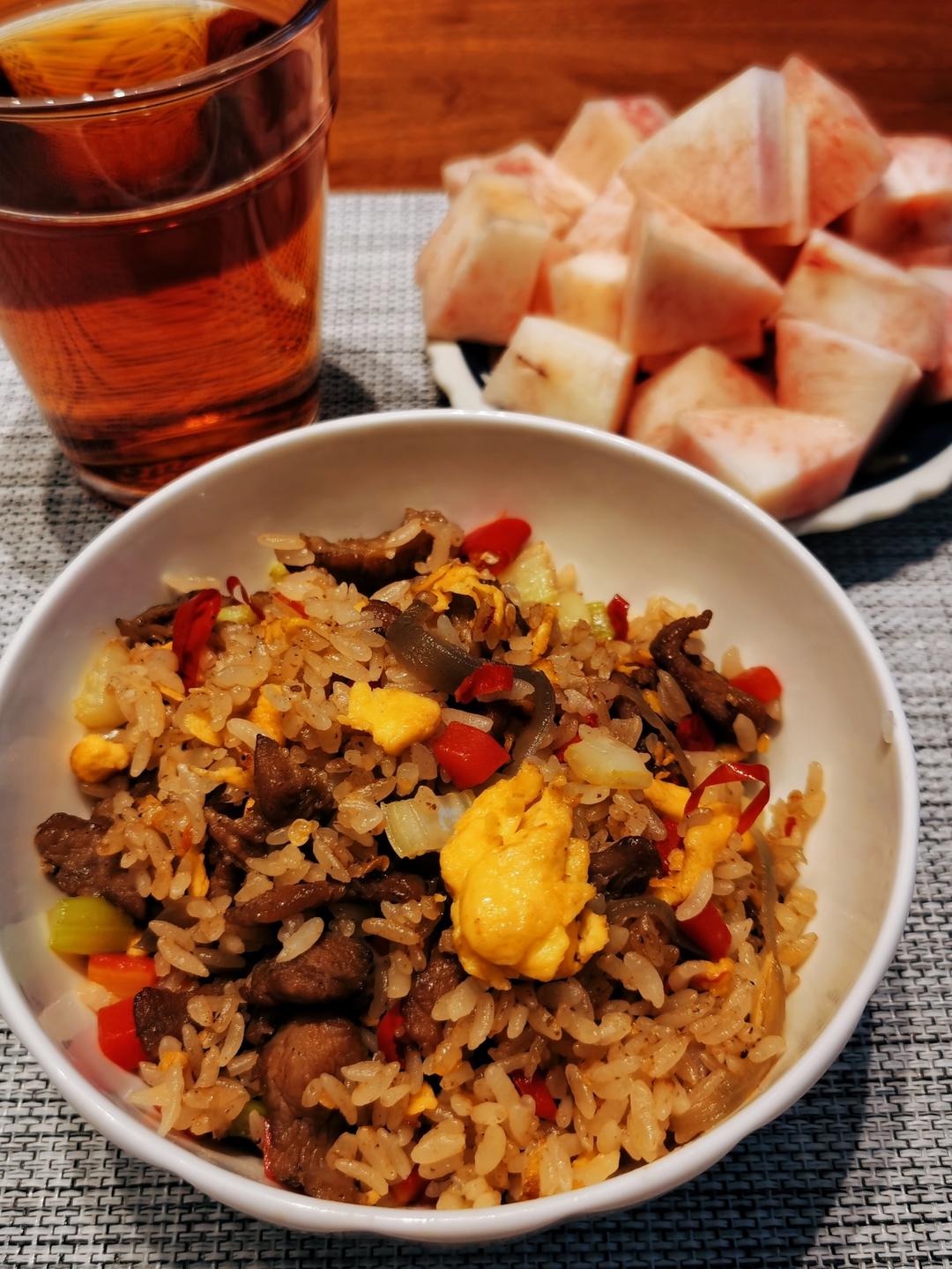 高三生早餐:牛肉孜然炒米