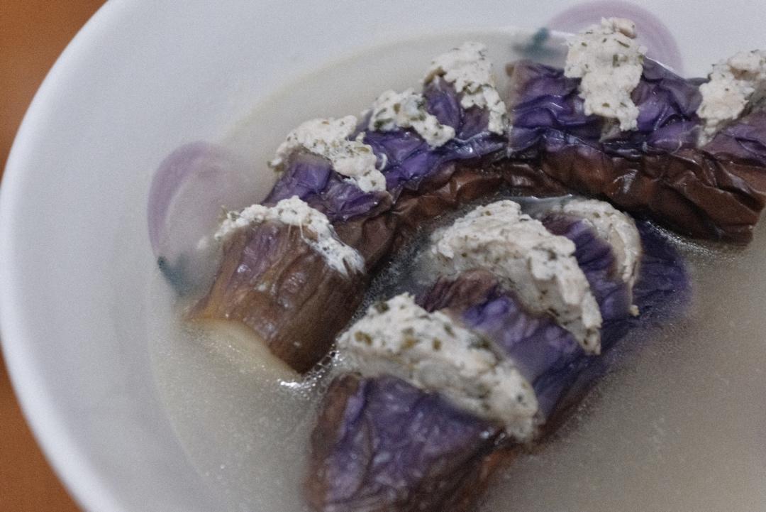 因为物资紧缺,很多东西只能将就了,用长茄子代替圆茄子,欧芹碎代替芹菜末。还好味道没有打折扣,鲜甜软糯,吃得出是用心的菜品...